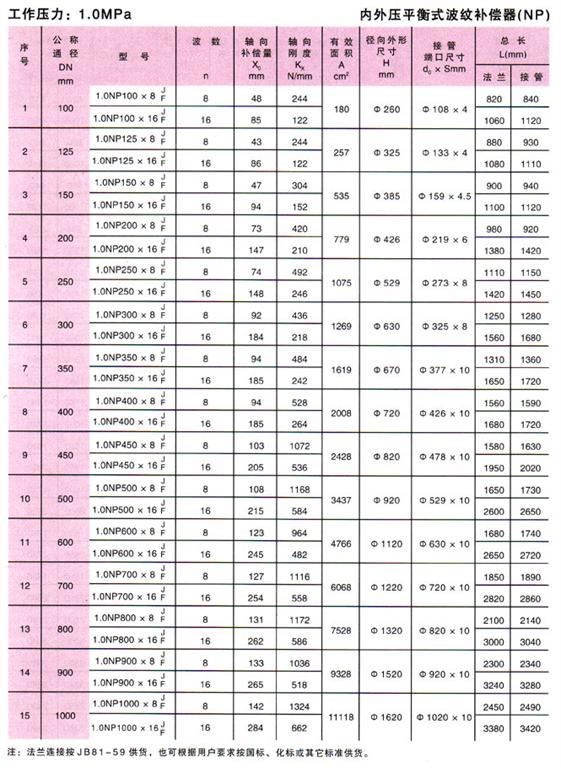 內外壓力平衡式波紋補償器(NP)參數1