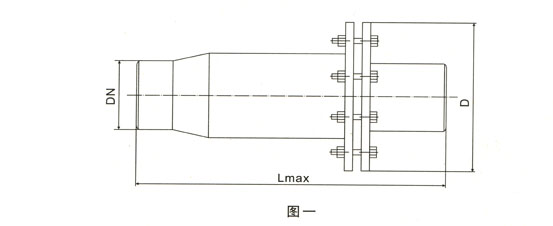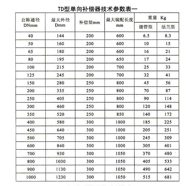 1、TD型單向補償器技術(shù)參數(shù)見表1,結(jié)構(gòu)型式見圖一。