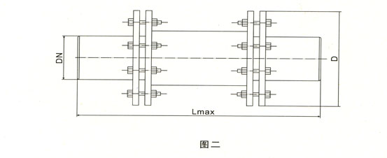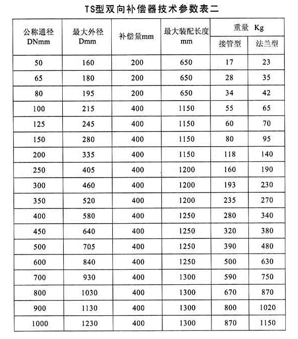 2、TS型雙向補償器技術(shù)參數(shù)見表2,結(jié)構(gòu)型式見圖二。