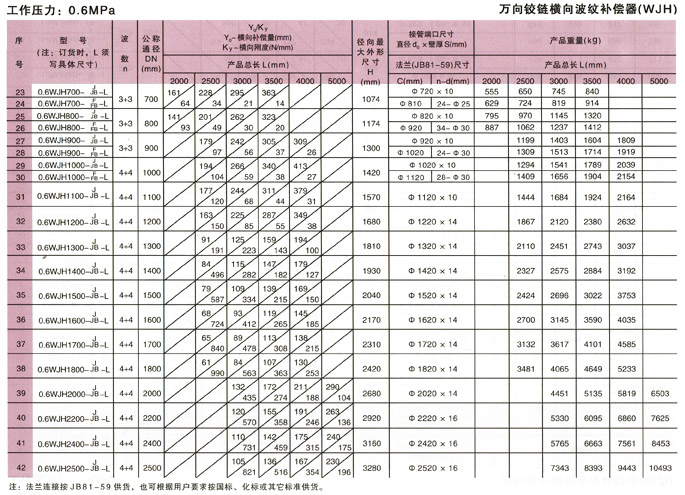 萬向鉸鏈橫向波紋補償器(WJH)產品參數2