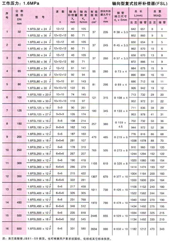 軸向型復(fù)式拉桿波紋補(bǔ)償器(FSL型)參數(shù)3