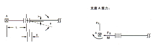 波紋補(bǔ)償器,用以補(bǔ)償軸向位移X=32mm,橫向位移Y=2.8mm,角向位移θ=1.8度,已知L=4m,補(bǔ)償器疲勞破壞次數(shù)按15000次考慮,試計(jì)算支座A的受力。